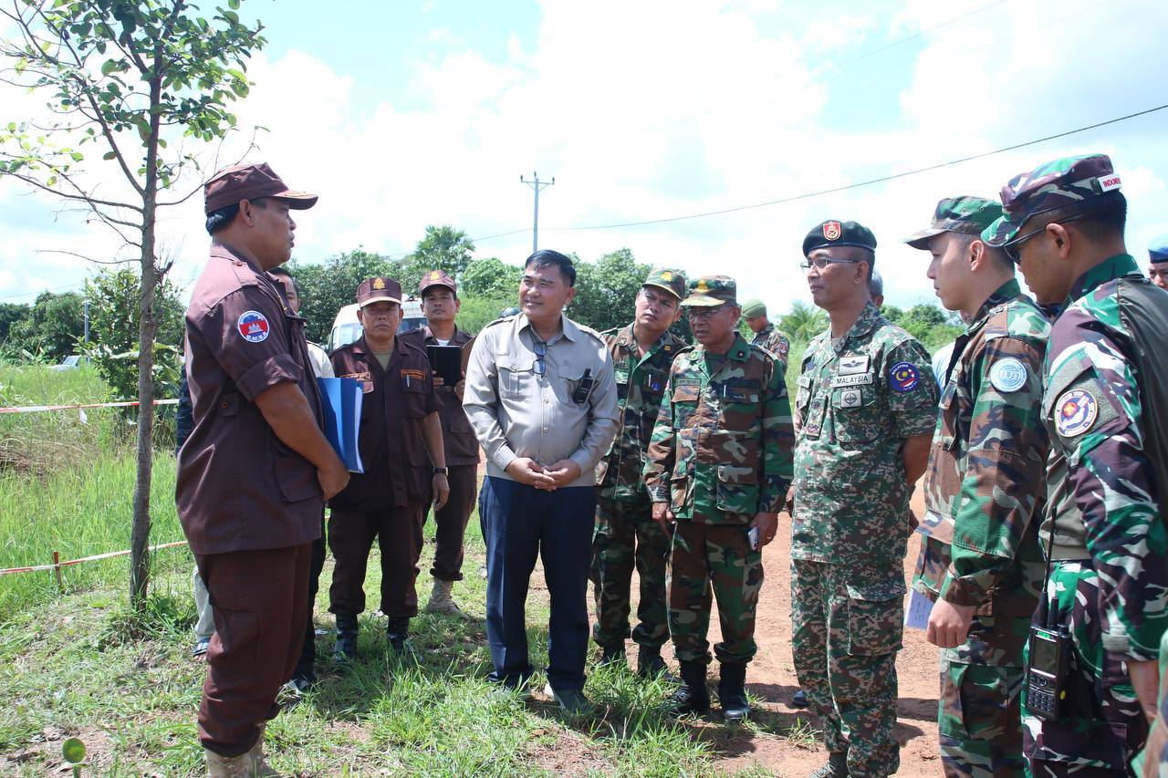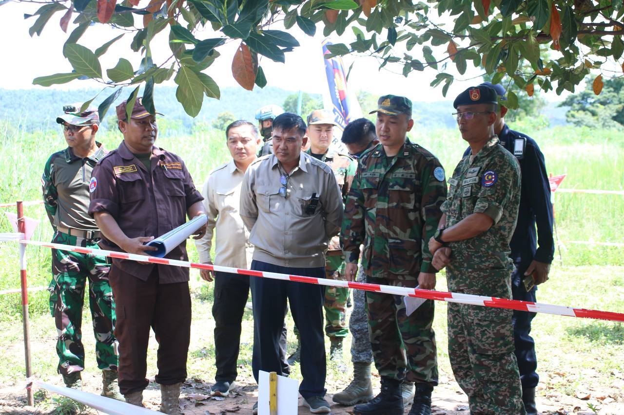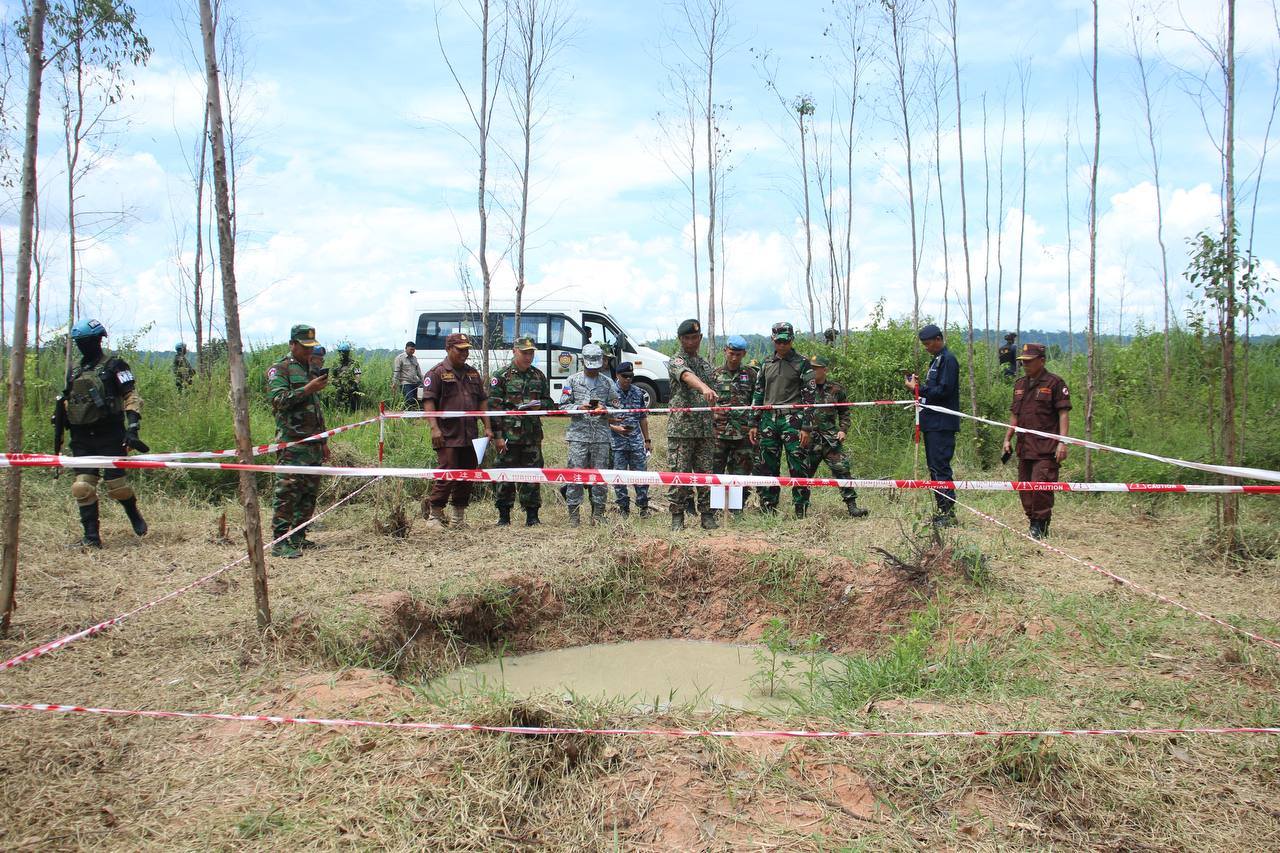 ក្រុម IOT ដែលដឹកនាំដោយ ប្រទេសម៉ាឡេស៊ី រួមនិងសមាជិក បានអញ្ជើញចុះពិនិត្យ ទីតាំងជាក់ស្ដែង ដែលរងផលប៉ះពាល់តាមរយៈការប្រើប្រាស់ យន្តហោះចម្បាំងទម្លាក់គ្រាប់ MK84 នៅតំបន់ភូមិថ្មដូន ឃុំគោកមន ស្រុកបន្ទាយអំពិល ខេត្តឧត្តរមានជ័យ។