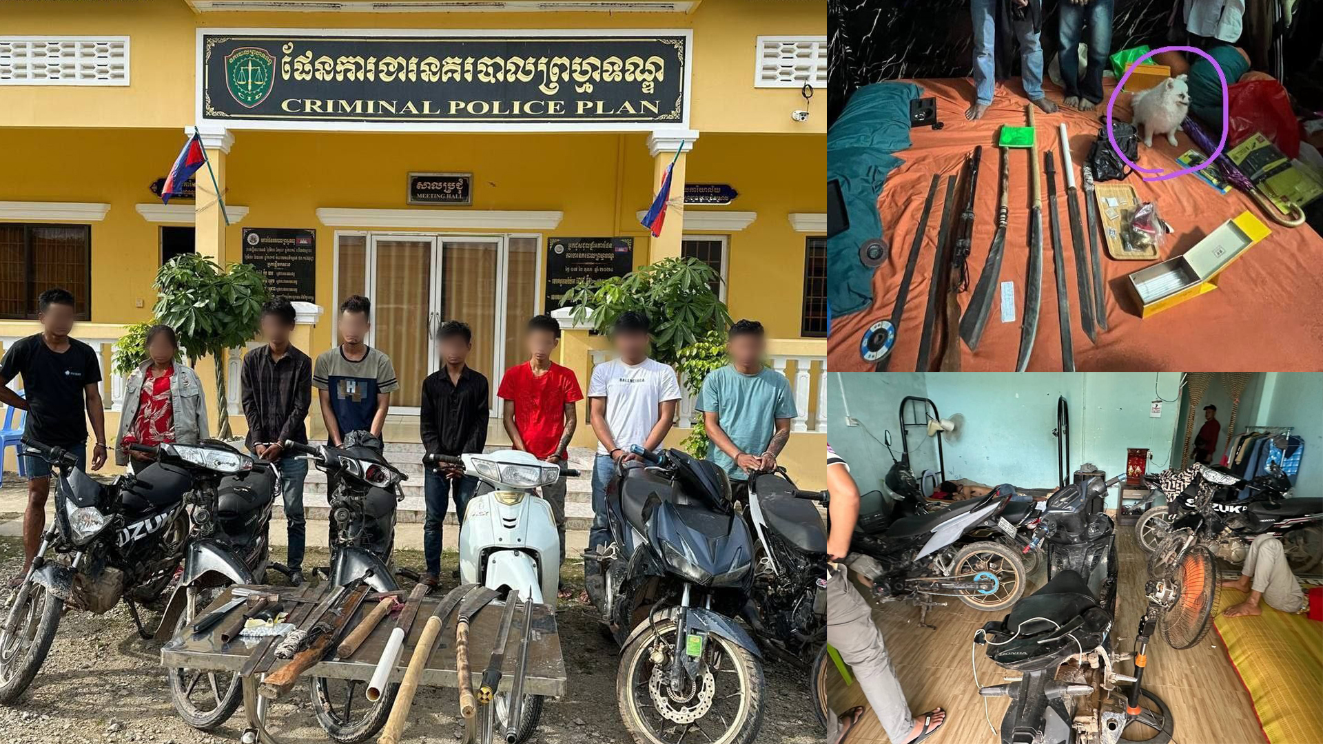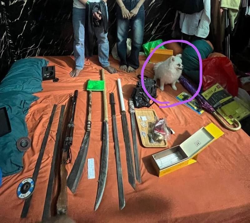 ជនសង្ស័យទាំង ០៦នាក់ ឈ្មោះ យ៉ុង ឌីណា (ម្ចាស់ផ្ទះ), ឈ្មោះ វង់ សាវិន, ឈ្មោះហៀង ឆ្នៃ រស់នៅភូមិបាវិតលើ, ឈ្មោះ ញឹម ចន្ថន រស់នៅភូមិម៉ែក្រអៀក ឃុំកណ្ដុរដុំ ស្រុកសំរោងទង ខេត្តកំពង់ស្ពឺ, ឈ្មោះម៉ៅ ធារ៉ា រស់នៅស្រុកកំពង់សៀម ខេត្តកំពង់ចាម និងឈ្មោះ ចាន់ ពៅ រស់នៅភូមិតាពៅ សង្កាត់បាវិត ហើយបានឆែកឆេររកឃើញមានក្រាមព៌ណសថ្លា និងម្សៅព៌ណស សង្ស័យថ្នាំញៀនចំនួន ០៨កញ្ចប់ ថ្នាំគ្រាប់ព៌ណលឿង សង្ស័យថ្នាំញៀនចំនួន ៤២គ្រាប់, ដាវច្នៃចំនួន ០៤ដើម, កាំបិតផ្គាក់ ០១ដើម, កណ្ដៀវ ០១ដើម, កាំភ្លើងស្នប់បាញ់ ០១ដើម, ដែកថែប ០២ដើម (ត្រៀមកែច្នៃធ្វើដាវ) ជំពាមកៅស៊ូ ០១ និងគ្រាប់ខ្លីដែកដែកឆាប ០១ដើម, កាំបិតចិតបន្លែ ០២ដើម, ពូថៅ ០១ និងញញួរ ០១, ម៉ូតូចំនួន ០៦គ្រឿង និងសម្ភារដែលពាក់ព័ន្ធមួយចំនួនទៀត។