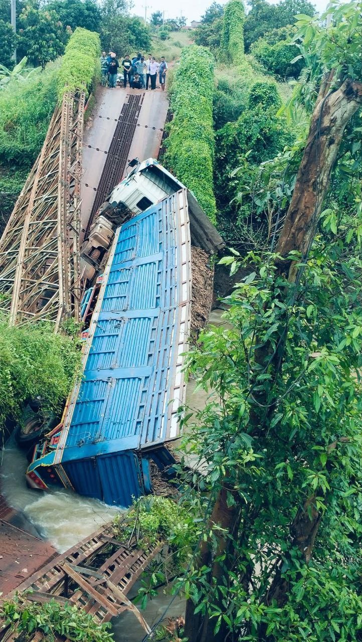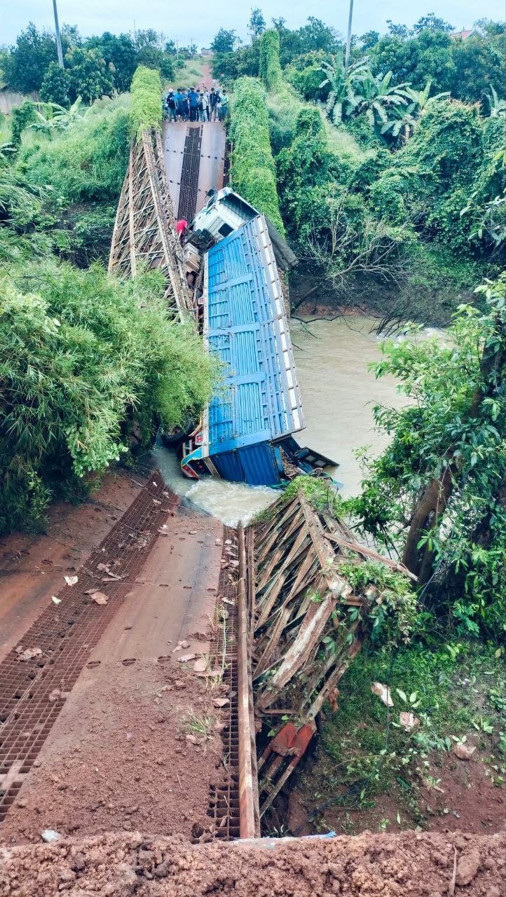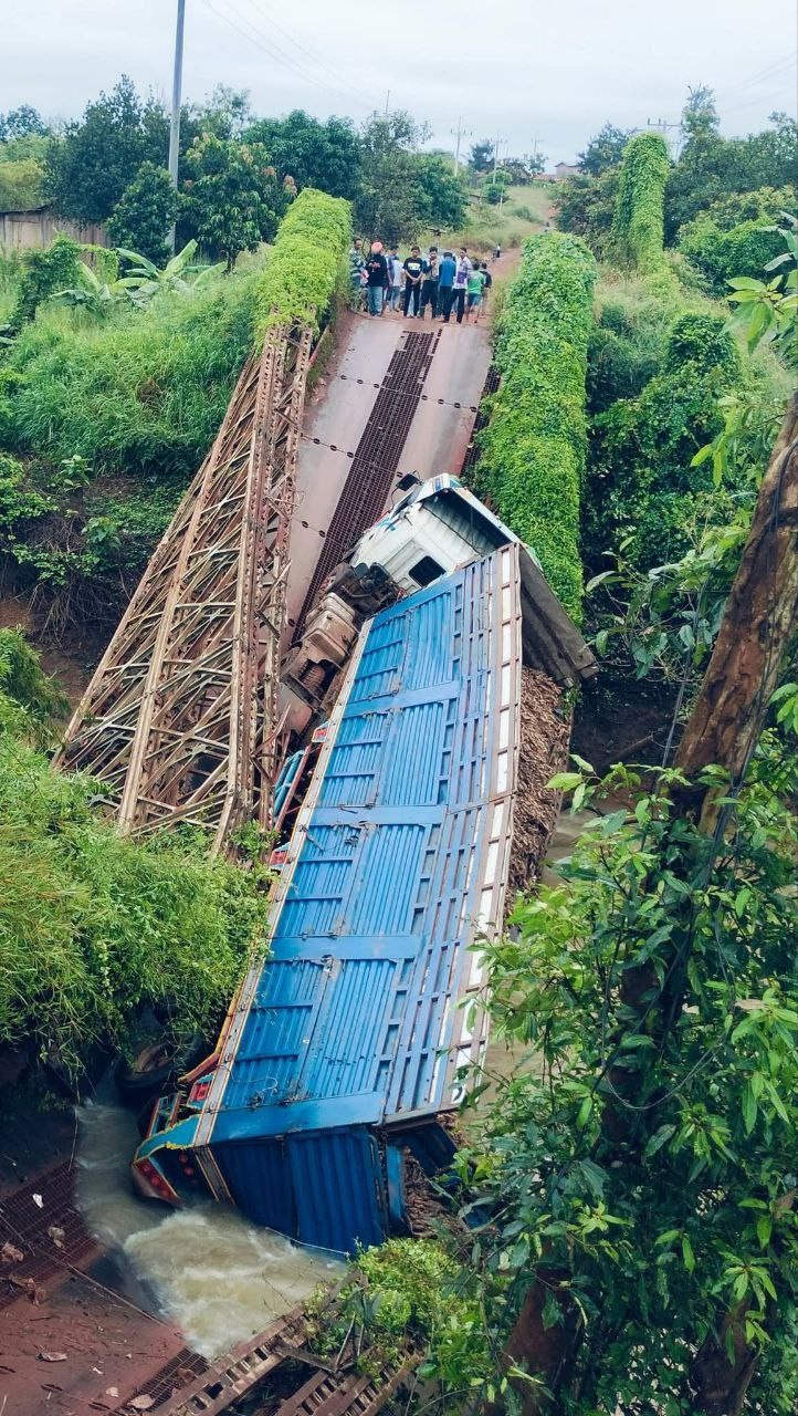 (ក្រចេះ) ៖ រថយន្តធុនធំ ប្រភេទក្បាលសណ្តោង ដឹកដំឡូងមីស្រស់ ០១គ្រឿង បានបើកបរឆ្លងកាត់ស្ពានដែកបេឡេត៍ បណ្ដាលឱ្យស្ពានបាក់ធ្លាក់ទាំងស្រុង ប្រវែង ៤៣ម៉ែត្រ ធ្វើឱ្យការធ្វើដំណើររបស់ប្រជាពលរដ្ឋកាត់ផ្ដាច់ទាំងស្រុង នៅព្រឹកថ្ងៃទី៣០ ខែតុលាឆ្នាំ២០២៥ វេលាម៉ោង ៧៖០០ព្រឹក នៅចំណុចស្ពានឆ្លូង ស្ថិតក្នុងភូមិសែនអភិវឌ្ឍន៍ ឃុំគ្រញូងសែនជ័យ ស្រុកស្នួល ខេត្តក្រចេះ។
