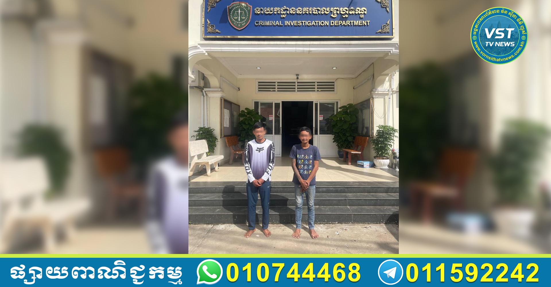 (ភ្នំពេញ) ៖ ដោយអនុវត្តតាមបទបញ្ជារបស់ លោកឧត្តមសេនីយ៍ឯក ង៉េង ជួ ប្រធាននាយកដ្ឋាននគរបាលព្រហ្មទណ្ឌ នៅថ្ងៃទី០៦ ខែវិច្ឆិកា ឆ្នាំ២០២៥ វេលាម៉ោង ២១៖១២នាទី លោកឧត្តមសេនីយ៍ត្រី ប៊ុត វណ្ណារដ្ឋ បានដឹកនាំកម្លាំងជំនាញ ធ្វើការឃាត់ខ្លួនជនសង្ស័យចំនួន ០២នាក់ ស្ថិតនៅត្រង់ចំណុចផ្លូវព្រះសុធារស សង្កាត់ចតុមុខ ខណ្ឌដូនពេញ រាជធានីភ្នំពេញ ពាក់ព័ន្ធនឹងករណីលួច (ទូរស័ព្ទ) កាលពីថ្ងៃទី០៥ ខែវិច្ឆិកា ឆ្នាំ២០២៥ នៅត្រង់ចំណុចផ្លូវលេខ១៩ កែងផ្លូវលេខ១៤៨ សង្កាត់ផ្សារកណ្ដាលទី២ ខណ្ឌដូនពេញ រាជធានីភ្នំពេញ។