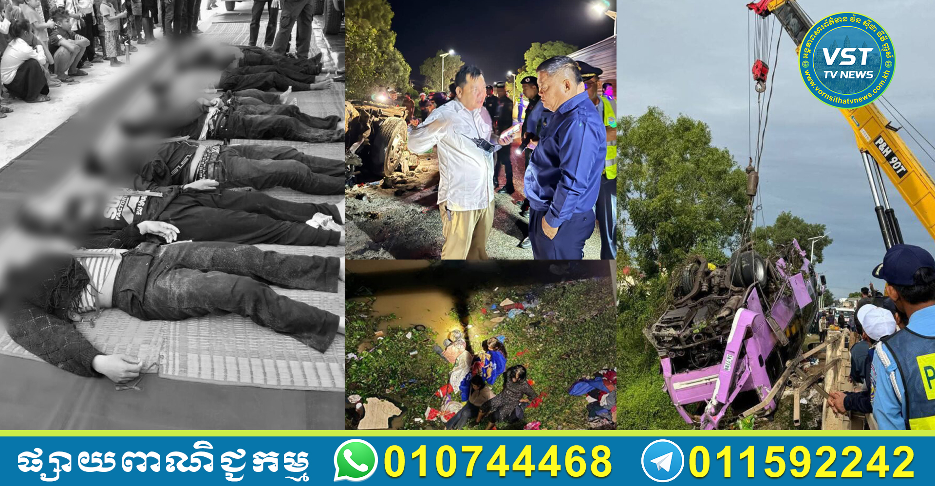 បើតាមលោកអធិការស្រុក ករណីគ្រោះថ្នាក់ចរាចរណ៍នេះបានកើតឡើងនៅវេលាម៉ោងប្រហែល ៤ទៀបភ្លឺ ថ្ងៃទី២០ ខែវិច្ឆិកា ឆ្នាំ២០២៥ បង្កឡើងដោយរថយន្តក្រុងពីរជាន់ដឹកអ្នកដំណើរ បុកបង្កាន់ដៃស្ពានធ្លាក់ចូលប្រឡាយទឹក។