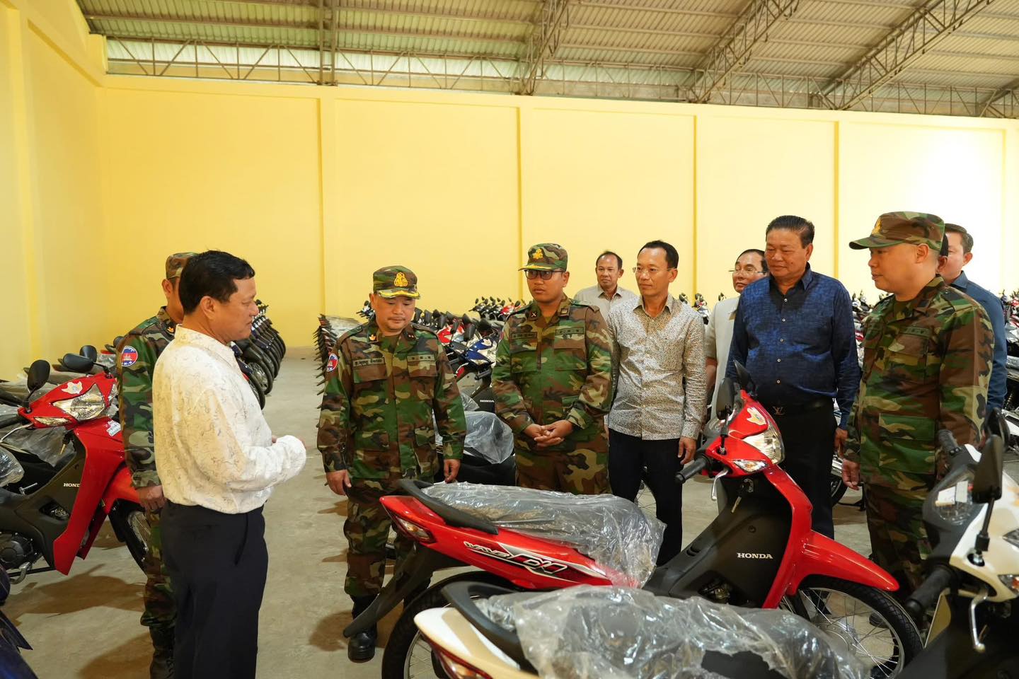 ម៉ូតូចំនួន ៥០០ គ្រឿង ជាអំណោយដ៏ថ្លៃថ្លារបស់ សម្ដេចមហាបវរធិបតី ហ៊ុន ម៉ាណែត និងលោកជំទាវ ពេជ ចន្ទមុន្នី ត្រូវបានប្រគល់ជូនវីរកងទ័ពជួរមុខ ដែលបានរងការខូចខាតក្នុងអំឡុងពេលប៉ះទង្គិចនាខែកក្កដា ឆ្នាំ២០២៥ កន្លងមក។