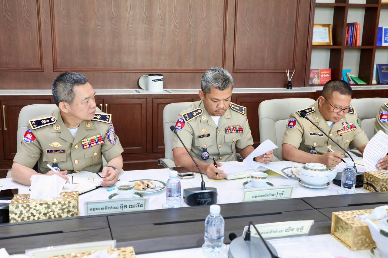 ភ្នំពេញ ៖ នាព្រឹកថ្ងៃសុក្រ ទី១២ ខែធ្នូ ឆ្នាំ២០២៥ នេះ ឯកឧត្តម នាយឧត្តមសេនីយ៍ ស ថេត អគ្គស្នងការនគរបាលជាតិ អញ្ជើញជាអធិបតីដឹកនាំកិច្ចប្រជុំវាយតម្លៃ និងដកបទពិសោធការងារបង្ក្រាបបទល្មើសនៅខេត្តស្វាយរៀង ខេត្តត្បូងឃ្មុំ និងខេត្តបន្ទាយមានជ័យ៕