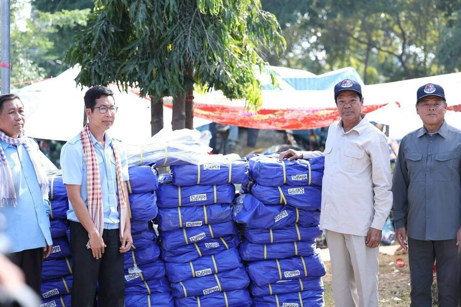 ឯកឧត្តម ទេសរដ្ឋមន្រ្តី បញ្ជាក់ទៀតថា ក្រៅពីតង់កៅស៊ូ ,សម្តេចកិត្តិព្រឹទ្ធបណ្ឌិត ប៊ុន រ៉ានី បានបញ្ជូលអំណោយមនុស្សធម៌ជូនប្រជាពលរដ្ឋភៀសសឹករាប់ម៉ឺនគ្រួសារតាមបណ្តាខេត្តដែលមានមណ្ឌលសុវត្ថិភាព ដើម្បីរួមចំណែក និងដោះស្រាយការលំបាកជាមួយបងប្អូនប្រជាពលរដ្ឋភៀសសឹក ដូចចា អង្ករ, គ្រឿងឧបភោគ បរិភោគ, ឃីតជាសម្ភារៈប្រើប្រាស់ចាំបាច់ និងថ្នាំសង្កូវជាដើម។