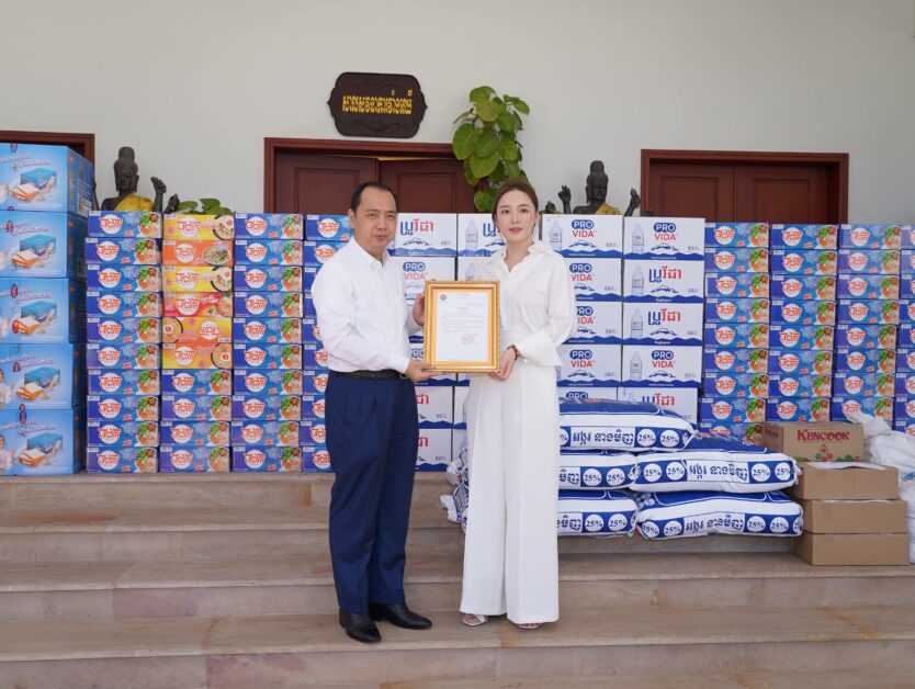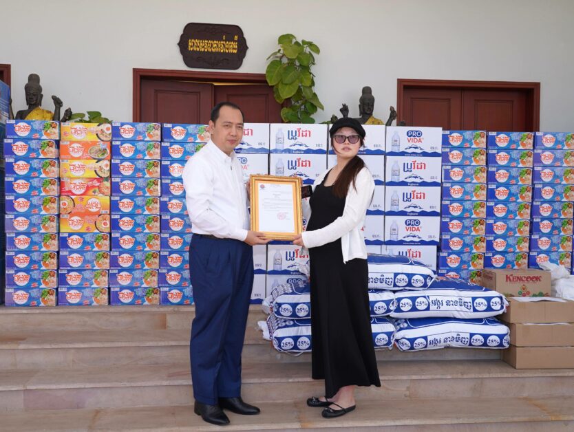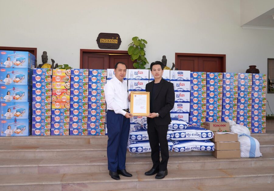 (ភ្នំពេញ)៖ អំណោយជាស្បៀងអាហារ និងទឹកសុទ្ធ របស់សប្បុរសជននានាដើម្បីចូលរួមគាំទ្រដល់វីរៈកងទ័ពជួរមុខ និងជួយដល់ប្រជាពលរដ្ឋភៀសសឹក ត្រូវបាន អ្នកឧកញ៉ា លឹម ហួរ នីតូ ប្រធានសមាគមយុវជនឌីជីថលកម្ពុជា-ចិន នាំយកមកប្រគល់ជូនដល់ ឯកឧត្តម នេត្រ ភក្ត្រា រដ្ឋមន្ត្រីក្រសួងព័ត៌មាន នៅព្រឹកថ្ងៃទី១៩ ខែធ្នូ ឆ្នាំ២០២៥ នាទីស្តីការក្រសួង។