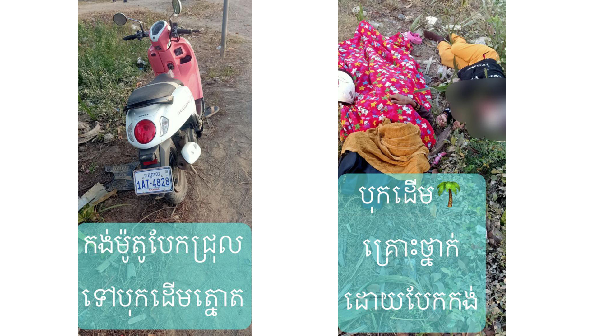តាមការបញ្ជាក់ពីសមត្ថកិច្ចជំនាញ លោកវរសេនីយ៍ទោ ជុន ចន្ទដេត អធិការនគរបាលស្រុកភ្នំស្រួច បានឱ្យដឹងថា ម៉ូតូបើកបរក្នុងទិសដៅពីកើតទៅលិច លុះមកដល់ចំណុចខាងលើ ម៉ូតូបែកកង់ក្រោយរួចរេចង្កូត ជ្រុលទៅបុកដើមត្នោតនៅខាងជើងផ្លូវ បណ្តាលឱ្យគ្រោះថ្នាក់មនុស្ស និងខូចខាតសម្ភារ របួសធ្ងន់ ០១នាក់ (ស្រី)។