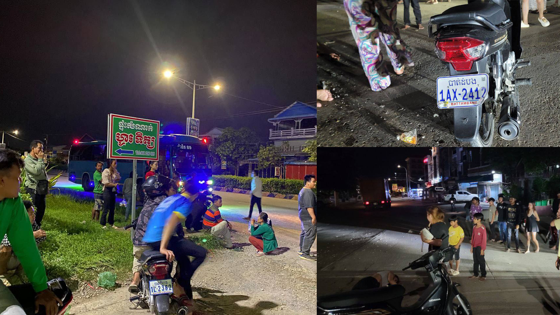 ប្រភពពីពលរដ្ឋនៅកន្លែងកើតហេតុ បានប្រាប់ថា ករណីគ្រោះថ្នាក់ចរាចរណ៍ខាងលើនេះ បានកើតឡើង រវាងម៉ូតូម៉ាកហុងដាឌ្រីម ពណ៌ខ្មៅ ០១គ្រឿង ពាក់ផ្លាកលេខ បាត់ដំបង 1AX-2412 បើកបរដោយស្ត្រីម្នាក់ និងអ្នករួមដំណើរជាស្ត្រីម្នាក់ ទិសដៅពីជើងទៅត្បូង ចំណែករថយន្ត ម៉ាក Kia Grandbird ពណ៌ខៀវ ពាក់ផ្លាកលេខ ភ្នំពេញ 3E-0934 ប្រភេទដឹកអ្នកដំណើរ ម៉ានិត៨៩ បើកបរដោយបុរសម្នាក់ ទិសដៅពីកើតទៅលិច លុះមកដល់ចំណុចកើតហេតុក៏បានបុកគ្នា បណ្តាលឱ្យស្ត្រីខាងលើរងរបួសធ្ងន់ស្រាល រួចរថយន្តបន្តបើកគេចខ្លួនទៅដល់ចំណុចផ្សារ ភួ ពុយ ក៏ត្រូវបានសមត្ថកិច្ចតាមប្រមាញ់ចាប់បានតែម្តង។
